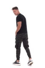 Calça camuflada cargo modelo com bolsos laterais fechamento