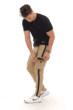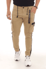Calça Cargo Com 2 Bolsos,Listras Laterais Ajuste Levemente Na Perna