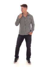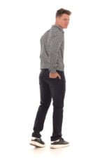 Calça masculina jeans modelo slim fit tradicional,bolso recorte,