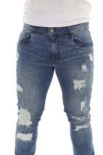 Calça jeans masculina de alta qualidade, feita com uma mistura de algodão e lycra para máximo conforto e flexibilidade. Ideal para qualquer ocasião, do casual ao formal.