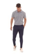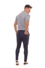 Calça Jeans com modelagem skinny. Lavagem discreta e bordado nos bolsos traseiros. Um tom coringa de jeans, combine com polos, camisetas e camisas!