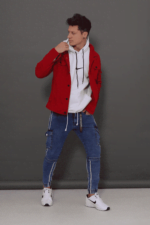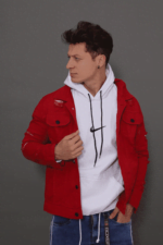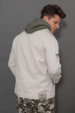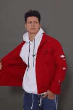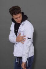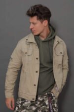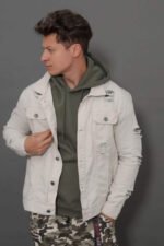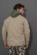 Jaqueta masculina rasgada nas mangas detalhes para um melhor caimento